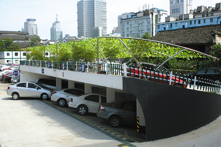 尚書街臨時停車場的這一停車設(shè)計建成于2013年1月份,是海曙區(qū)房管處科研攻關(guān)項目“地勢高差斜向泊車系統(tǒng)”的試點樣本,建設(shè)目的在于探索在有限空間如何進一步挖掘停車潛力。