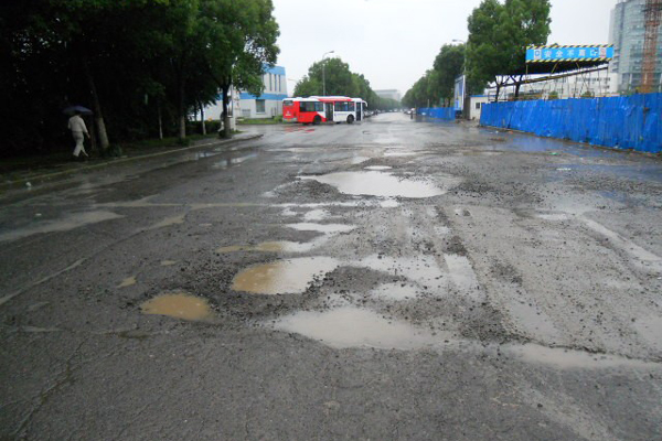 中國寧波網(wǎng)手機(jī)記者139****8094:持續(xù)的陰雨,引發(fā)不少路面積水,此處為清水橋路一段破損路面,破損程度已經(jīng)比較嚴(yán)重,此現(xiàn)象現(xiàn)在隨處可見,這樣的路面凹凸不平,存在隱患!走過路過的行人車輛可要注意安全了。唉!都是雨水惹的禍!
