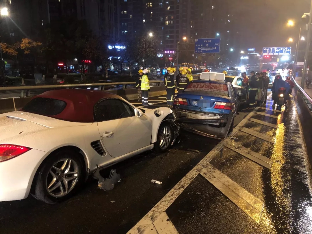 據(jù)最開始追尾的轎車車主說:“我當(dāng)時已經(jīng)看見前面的車了,但是我剎車的時候,突然輪胎就抱死了,整輛車滑溜下去,直接撞上了前面的出租車。”