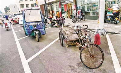 貴駟街道上海發(fā)聯(lián)超市門(mén)口公共停車(chē)位被三輪車(chē)占用。