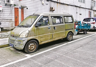 長(zhǎng)期占據(jù)獅子街公共車(chē)位的面包車(chē)。