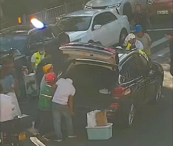 7時(shí)12分,鄞州交警城區(qū)一中隊(duì)接警后迅速調(diào)派警力,8分鐘后,民警王京國與輔警張高、俞鈞即趕到現(xiàn)場(chǎng)。