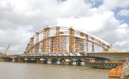 在今天全橋合龍后,大橋主體結構施工完成。接下來,將進行橋面附屬結構及配套工程的施工。 |