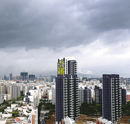 9月14日,烏云籠罩福州市上空。據(jù)福建省氣象臺最新發(fā)布的中北部沿海臺風(fēng)警報,強臺風(fēng)“森拉克”14日上午9時減弱為臺風(fēng),預(yù)計未來臺風(fēng)中心將緩慢向西北方向移動,并逐漸轉(zhuǎn)向偏北方向移動。受其影響,14日至15日,寧德市和福州市北部將有大雨到暴雨,過程雨量將達50-100毫米,局部超過150毫米。(新華社記者 姜克紅 攝)
