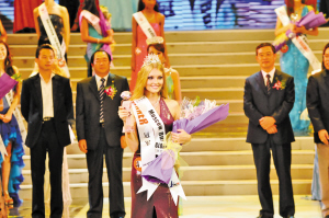 本報(bào)訊(記者 李臻) 經(jīng)過(guò)幾個(gè)月的激烈角逐,在著名主持人王小丫,歌手許志安、羅中旭等名人的助陣下,2008“環(huán)球皇后”昨晚終于在寧波大劇院誕生了。經(jīng)過(guò)評(píng)選,“中國(guó)三甲”、“最佳才藝皇后”、“最佳智慧小姐”、“最高貴皇后”、“最上鏡皇后”、“最佳民族服飾皇后”等一個(gè)個(gè)單項(xiàng)獎(jiǎng)先后出爐。而眾望所歸的俄羅斯小姐、北京小姐和希臘小姐分別獲得冠、亞、季軍。俄羅斯小姐艷壓群芳,經(jīng)歷了重重“考驗(yàn)”摘取冠軍桂冠。寧波姑娘戴婧斬獲“最具愛(ài)心小姐”稱號(hào)。