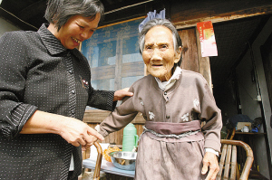 負責(zé)照顧老人的沈女士說:“她住在這里快4年了,沒見她生過什么病,動手能力超強,穿衣吃飯都不需要人幫忙。到現(xiàn)在,有些輕便的衣服還會自己洗!睏顐惾A也說:“阿婆90多歲時還會上山砍柴,我們村里人都說她是神仙呢!