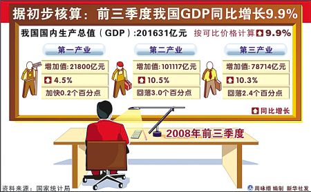 據(jù)新華社北京10月20日電 國(guó)家統(tǒng)計(jì)局新聞發(fā)言人李曉超20日說(shuō),據(jù)初步核算,前三季度國(guó)內(nèi)生產(chǎn)總值201631億元,按可比價(jià)格計(jì)算,同比增長(zhǎng)9.9%,比上年同期回落2.3個(gè)百分點(diǎn)。前三季度,我國(guó)居民消費(fèi)價(jià)格總水平(CPI)同比上漲7.0%,漲幅比上半年回落0.9個(gè)百分點(diǎn),其中,城市上漲6.7%,農(nóng)村上漲7.7%。