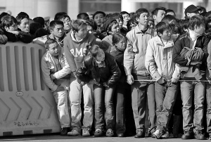 會展中心購票旅客人山人海。記者 戚顥 攝    昨天是國際會展中心臨時售票點開始工作的第一天。記者了解到,按照先領(lǐng)購票編號單,再按指定日期購票的安排,昨天臨時售票點已經(jīng)將12日、13日兩天的編號單發(fā)放完畢,今天開始發(fā)放14日以后的購票編號單。   由于從元旦起列車預(yù)售票時間統(tǒng)一提前到10天,因此購票編號單的發(fā)放就變成了提前11天!拔覀兪窃缟7點開始發(fā)放編號單和售票的,到下午2點30分,1月12日、13日兩天的編號單就發(fā)完了,這就意味著1月13日以前的長途火車票已經(jīng)賣完!迸R時售票點的上海鐵路局寧波車務(wù)段相關(guān)負責(zé)人表示,發(fā)放購票編號單的進度將根據(jù)現(xiàn)場情況與公安部門協(xié)商后確定,一般是一天發(fā)放兩天的購票編號單。照此進度,到1月8日,春節(jié)前寧波始發(fā)的所有長途火車車票編號單都將發(fā)放完畢。也就是說,到1月8日,如果旅客還沒有領(lǐng)到購票編號單,就必須考慮換乘其它交通工具。   數(shù)百人元旦前開始排隊   昨天早上6點多鐘,記者來到國際會展中心臨時售票點時,那里已是人山人海,特別是前往成都、貴陽等方向的旅客,他們在排隊領(lǐng)號的指定地點排起了數(shù)百米的長龍。雖然排隊的地方不在露天,但凜冽的寒風(fēng)還是讓人瑟瑟發(fā)抖。   在前往西安方向的隊伍中,記者碰到了排在最前面的張師傅,他頭頂一件舊棉襖,臉被凍得通紅。對于自己所處的位置,張師傅很得意,“前天下午2點多鐘我就到這里來了。當(dāng)時人還不多,所以就搶在前面了!   站在前往成都方向隊伍中間的小伙子王志高則一臉后悔,“都怨我沒看報紙,不知道售票點搬到了會展中心!蓖踔靖吒嬖V記者,他在北侖打工。前天下午3點多鐘,他與幾個老鄉(xiāng)就趕到鐵路南站排隊買票。直到昨天凌晨1點多鐘,他才聽排隊的旅客說,長途火車票售票點從1月2日起搬到會展中心了。核實之后,他們急忙趕了過來,發(fā)現(xiàn)這里已經(jīng)排起了長龍。   會展中心的保安告訴記者:“最早來排隊的出現(xiàn)在2008年12月31日晚上,當(dāng)晚就有兩三百人,他們很多都帶著被子,元旦白天也沒有離開。在這里等候了兩夜,確實辛苦!   領(lǐng)號買票現(xiàn)場秩序井然   雖然排隊領(lǐng)號買票的旅客很多,但現(xiàn)場秩序非常好。記者看到,領(lǐng)號處和售票處都是鐵架圍成了半封閉的區(qū)域,只留入口和出口兩處口子,每處口子都有多名民警和協(xié)警維持秩序。   在排隊領(lǐng)號處,根據(jù)客流量的情況,分成了成都方向、貴陽方向、阜陽方向和其它方向等幾個排隊隊列,所有旅客都要到入口處排隊,依次到領(lǐng)號窗口去取號。領(lǐng)號窗口分成了成都、貴陽、西安等8個窗口。   隊伍在距離領(lǐng)號窗口大約50米處就被工作人員攔下,然后隊伍前面20名左右的旅客上前等候。待領(lǐng)號窗口的人員離開后,等候旅客再到各自的窗口領(lǐng)號。每張?zhí)柹隙甲⒚髁四康牡睾唾徠睍r間等信息。按照上面的信息,旅客再憑著該號到售票點購票。因為無號的人不能進入售票點,因此售票點的秩序也非常好。   人性化服務(wù)受旅客稱贊   在距離排隊領(lǐng)號入口處大約20米遠的地方,記者看到了一座標著寧波市市容環(huán)境管理處字樣的流動廁所。   據(jù)管理人員介紹,該廁所兩天前就已到位。由于購票的顧客太多,他們每天派出兩名工作人員24小時服務(wù),隔一段時間就要清掃一次,以保持廁所的整潔和衛(wèi)生。   對于這座流動廁所的設(shè)置,排隊的旅客都認為這是非常人性化的舉措,“以前排隊買票,附近難以找到廁所,晚上隨處可見隨地便溺者,周圍臭不可聞,而排隊的女性就更加不方便。流動廁所很好地解決了這個問題,周圍的環(huán)境也好多了!   考慮到天氣寒冷,購票旅客排隊饑餓、寒冷等實際問題,會展中心特許一些小攤販在不影響正常秩序的前提下進場營業(yè)。記者看到,當(dāng)天到這里的攤販至少有20多個。由于會展中心距市區(qū)比較遠,周圍又沒有商場、超市之類的賣場,大量買票旅客的到來,讓進場營業(yè)的那些攤販的生意著實火了一把。   不過,食品衛(wèi)生問題還是引起了一些旅客的擔(dān)憂。旅客張先生說,那些小攤販可能很多都是無照經(jīng)營,食品衛(wèi)生問題可能被忽視了。如果有關(guān)部門將這些小攤販納入監(jiān)管范圍,旅客吃起來會更放心! ∮浾 楊繼學(xué) 程鑫  本篇新聞熱門關(guān)鍵詞:被子 報紙 出口 超市 會展中心