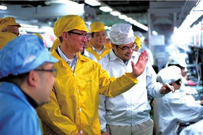 苹果CEO蒂姆·库克本周四造访了富士康位于河南郑州的工厂。图/CFP