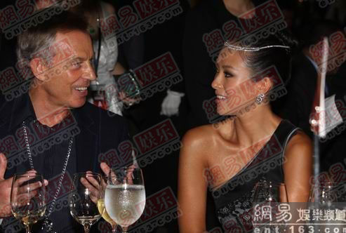 沒有VIVI作陪,子怡在好萊塢苦練的英文也不會無用武之地,身份尊貴的她坐在英國前首相布萊爾身旁,兩人一路有說有笑,交流全無障礙。