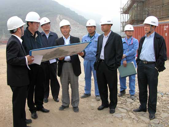2005年10月24日,中共浙江省委常委、寧波市委書記巴音朝魯(左二)考察大榭