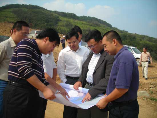 2008年3月31日-4月2日,中信公司黨委委員、副總經(jīng)理、大榭公司董事長王炯(右二)在大榭檢查、指導工作。