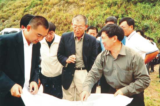 2004年6月1日,原中信集團(tuán)公司董事長王軍(左二)在大榭考察
