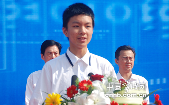 寧波市首屆網(wǎng)絡(luò)文化節(jié)開(kāi)幕現(xiàn)場(chǎng),學(xué)生代表發(fā)表倡議書(shū)。
