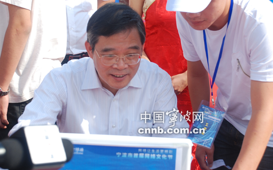 寧波市首屆網(wǎng)絡(luò)文化節(jié)開(kāi)幕現(xiàn)場(chǎng),寧波市委常委、宣傳部長(zhǎng)宋偉在網(wǎng)上簽名。