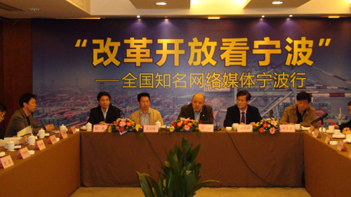 中國(guó)寧波網(wǎng)11月19日消息(記者孫世云張曉)“改革開(kāi)放看寧波——全國(guó)知名網(wǎng)絡(luò)媒體寧波行”于11月19日正式啟動(dòng)。本次活動(dòng)將歷時(shí)3天,將采訪(fǎng)報(bào)道杭州灣跨海大橋、寧波港、奉化滕頭村、81890服務(wù)中心等,從社會(huì)經(jīng)濟(jì)發(fā)展、農(nóng)村建設(shè)等多角度、全方位看寧波改革開(kāi)放30周年的變化和取得的成就,展現(xiàn)寧波“和諧發(fā)展城市”的風(fēng)采。