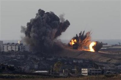 1月1日,以色列繼續(xù)空襲加沙。   中新網1月2日電 以色列對加沙的空襲進入第六天,據報哈馬斯領導人尼扎爾·拉揚被炸死。哈馬斯1日證實,哈馬斯高級領導人尼扎爾·拉揚在當天的以軍空襲中喪生。當拉揚在加沙的住宅遭到以軍轟炸時,他和其他六人都被炸死。   據英國廣播公司報道,與此同時,聯合國難民救濟和工程局說,他們已經恢復在加沙分發(fā)食品。自從上周六以軍開始空襲以來,加沙有410人喪生。加沙醫(yī)院設法治療數以百計的傷員,難度越來越大。   拉揚一直強烈抨擊以色列,并要求恢復對以色列開展自殺式炸彈攻擊。這是以軍在這次軍事行動中首次攻擊哈馬斯的政治領導人。    以色列說,以軍針對的目標是哈馬斯武裝分子,因為這些人繼續(xù)向以色列境內發(fā)射火箭,造成4名以色列人喪生。以軍的空襲炸毀了加沙的議會和政府司法、交通和教育部的建筑。    以色列軍隊在加沙地帶邊境集結,并宣布周邊地區(qū)為“軍事區(qū)”,分析人士普遍認為,這可能意味著以軍準備向對加沙發(fā)動地面襲擊。    安理會決議未獲通過   聯合國安理會召開會議就呼吁加沙地帶實現;鸬臎Q議草案進行了討論,但有關決議未獲通過。    這次會議應阿拉伯聯盟要求召開,會議討論了由利比亞提出的決議,決議草案譴責以色列軍方的行動,并要求以軍立即;。美國和英國就此提出異議,指出決議內對巴勒斯坦激進組織對以色列的襲擊只字未提。    此前,以色列總理奧爾默特拒絕了有關;48小時,以便加沙地帶接受更多人道援助的呼吁。    國際社會繼續(xù)斡旋    法國總統(tǒng)薩爾科齊宣布他將前往中東進行外交斡旋以結束加沙危機,他將在元旦日會晤以色列外長利夫尼。    與此同時,土耳其總理埃爾多安將與埃及總統(tǒng)穆巴拉克在埃及沙姆沙伊赫舉行會談,繼續(xù)為解決加沙危機進行外交努力。    美國大使表示他認為不應該由聯合國強迫實現停火,而應該由以色列和哈馬斯雙方協(xié)議停火。不過巴勒斯坦總統(tǒng)阿巴斯威脅退出和談,他譴責以色列對加沙地帶的空襲是“野蠻”和“侵略”。    奧爾默特12月31日在以色列內閣會議后表示,目前還不是;鸬臅r機,但并不否認未來可能與哈馬斯達成停火。  本篇新聞熱門關鍵詞:會議