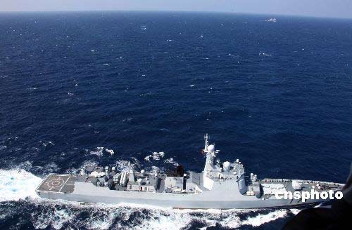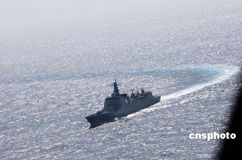 1月2日,隨“海口”艦艦載直升機在空中拍攝“?凇碧枌楎(qū)逐艦馳騁于印度洋的雄姿。 中新社發(fā) 孫自法 攝