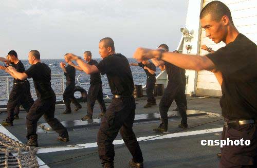 1月2日清晨,“海口”號導彈驅(qū)艦隨艦特戰(zhàn)隊員在甲板上進行搏擊、擒拿、格斗等訓練。 中新社發(fā) 孫自法 攝   中新網(wǎng)“海口”艦1月2日電 題:“?凇迸炿S艦日志之八   中新社記者 孫自法   1月2日,“?凇碧枌楎(qū)逐艦繼續(xù)馳騁于印度洋。   記者因為惦記著拍攝海上日出,所以起得比昨天還要早些趕到甲板上,日出還是沒趕上,倒是趕上了隨艦特戰(zhàn)隊員甲板晨練全過程。    記者拍了幾幅特戰(zhàn)隊員晨練照片,自己也搖晃著繞著甲板慢跑了幾圈,等特戰(zhàn)隊員晨練結(jié)束,便走過去與隨艦特戰(zhàn)隊員的負責人攀談起來。他說,艦上受條件所限,特戰(zhàn)隊員們岸上平常每日都要進行的長跑等體能訓練沒法展開,在艦上一般進行搏擊、擒拿、格斗等訓練,目標是執(zhí)行任務時能在第一時間克敵制勝。   早飯后又到甲板上蹓達,聽艦載直升機機組成員說上午要執(zhí)行飛行訓練任務,飛機上有座位,可以申請隨直升機采訪拍攝。趕緊去找我們隨艦記者團負責人陶干事并提出隨直升機采訪申請,陶干事隨即與“?凇迸炛笓]員協(xié)調(diào),很快,我的申請得到批準。   雖然直升機起飛尚有一段時間,但急性子的我還是檢查好相機等采訪拍攝裝備,穿上救生衣,早早地就跑到甲板上守侯著。艦上時間上午九點多,飛行員和乘機人員開始登機,中央人民廣播電臺記者孫利特地趕來,給我拍了一幅起飛前在直升機上揮手的照片。   機艙內(nèi)空間相當狹小,人無法站直身子,飛行員不時提醒大家要當心別碰頭,頭頂上方和機艙兩壁,密密麻麻地布滿著各種管線,駕駛艙內(nèi)都是各類飛行儀表。我戴上飛行員的飛行頭盔,倒是不擔心碰腦袋了,但特別的悶熱,呼呼地冒汗,飛行完畢后回到所住艙室內(nèi),脫下救生衣,才發(fā)現(xiàn)全身上下的衣服都濕透了。   登機前后,地勤人員即緊張利落、有條不紊地開展各項飛行準備。艦上時間快十點時,伴隨著陣陣巨大的轟鳴聲,艦載直升機雙層相反方向旋轉(zhuǎn)的螺旋槳越轉(zhuǎn)越快,很快從甲板上騰空而起,向任務海域飛去。在距海面約500米左右空中飛行時,從飛機上看海面,看到的似乎是平整的地面,星星點點的浪花看上去就像地面上尚未融化的積雪一般。   因為我們護航編隊三艘艦艇之間有一定距離,空中無法拍到三艦列隊馳騁的壯觀畫面,再加上我之前毫無航拍經(jīng)驗,編隊每艘艦艇破浪前行的雄姿在空中拍攝的效果也不是太理想,我對此很是遺憾。照片倒是拍了一些,也積累了一點經(jīng)驗,爭取下次申請乘直升機時能好好拍一些航拍圖片。   我們艦的直升機從任務海域巡邏后返回“?凇迸炛灒蟻硪晃粊碜浴拔錆h”艦的乘客后,直升機隨即起飛趕赴“武漢”艦,在“武漢”艦降落放下乘客后未作停留,又立即飛赴“微山湖”號綜合補給艦加油,趁飛機加油的功夫,我們也到“微山湖”號上稍作休息。最直觀的印象,就是“微山湖”號比我們“?凇迸瀸掗煻嗔,也穩(wěn)多了,站在那相對而言如履平地的甲板上,拍了幾幅“?凇迸灪叫姓掌,直升機加油也結(jié)束了,趕快登機,不一會兒,飛機起飛,直接返回“?凇迸。   我的首次直升機而且是艦載直升機之旅,經(jīng)過一個小時左右的空中飛行、來往穿梭于編隊三艘艦艇后順利結(jié)束。這是我第一次搭乘直升機,也是第一次進行空中航拍采訪,還有幸成為“海口”艦隨艦記者中第一個乘直升機采訪、航拍的記者,感覺相當好,并已經(jīng)開始期待再次乘直升機采訪和航拍了。   從昨晚開始,艦上第三次調(diào)時,又往后調(diào)了一小時,調(diào)后艦上比北京晚三小時。今晚聽艦上廣播說,我們護航編隊已駛?cè)氚⒗。?jù)了解,我們護航編隊預計6日前后抵達亞丁灣、 索馬里海域,屆時與北京時差5-6小時。(完) 本篇新聞熱門關(guān)鍵詞:日清