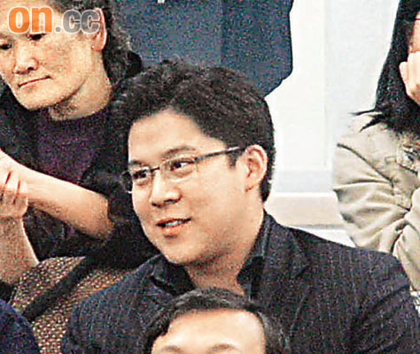 坐在看臺的霍啟剛,欣賞郭晶晶表演時一副甜密樣