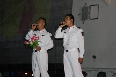 “?凇迸炛笓]員胡偉華在甲板“春晚”上高歌一曲《九月九的酒》,既勾起艦員們“每逢佳節(jié)倍思親”的思緒,又唱響了中國海軍護航官兵不畏艱難險阻、壯懷激烈的熱血情懷。