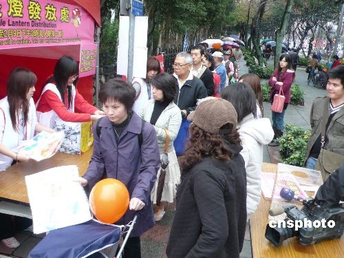 2月6日,元宵節(jié)將至,臺北市向市民免費發(fā)放元宵節(jié)小提燈。市民只要捐兩張發(fā)票,就可獲得一組牛年小提燈,民眾踴躍領取,排隊長達數(shù)百米。中新社發(fā) 路梅 攝 |