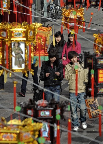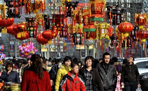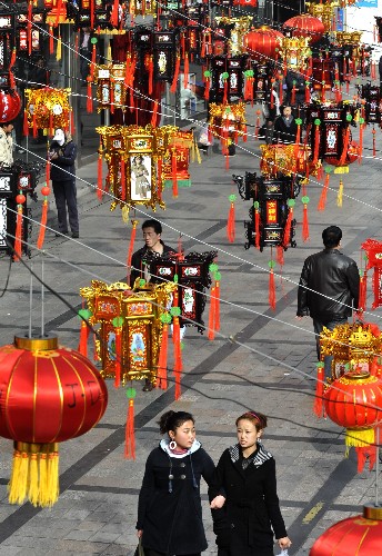 2月6日,市民在呼和浩特中山路商業(yè)街上賞燈購物。 元宵節(jié)即將來臨,呼和浩特市的主要街道上懸掛起各種彩燈,讓市民感受到了濃濃的節(jié)日氣氛。 新華社記者 李欣攝