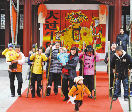 昨天,在慈城城隍廟參觀的游客興致勃勃地體驗(yàn)了一回踩高蹺! ≡(jié)將至,慈城旅游開(kāi)發(fā)公司推出傳統(tǒng)民俗鬧元宵活動(dòng)。在民間藝人的幫教下,游人可參與做燈籠、踩高蹺、打陀螺、賽風(fēng)車(chē)等節(jié)目,給慈城古城增添了濃濃的中國(guó)年味。(記者 龔國(guó)榮) |