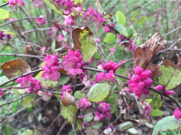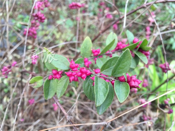 在當下季節(jié),紅雪果實在是一種不起眼的小灌木。它植株矮小,枝條纖細,寒風之中,葉子已落了一半,剩下一半,也是半枯半綠。在中山公園那株一人多高的大花六道木邊上,我?guī)缀鯖]注意到它。